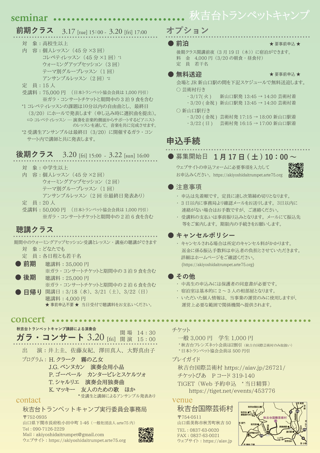 ・秋吉台トランペットキャンプ(026年3月17日(火)~3月22日(日))を追加しました。